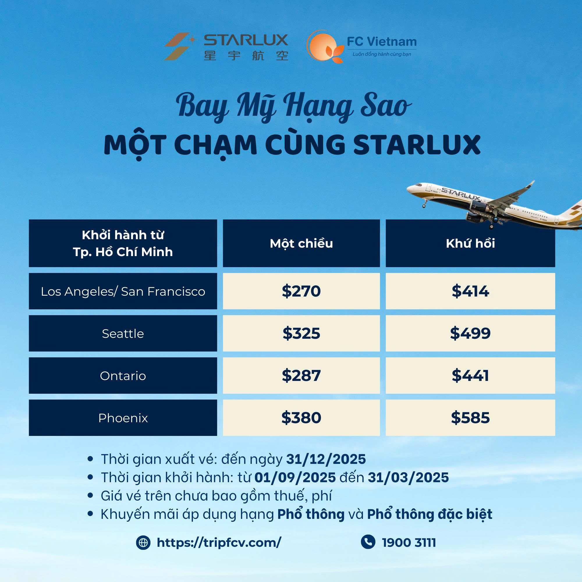 Sẵn sàng cất cánh đến Mỹ với STARLUX Airlines – nơi hành trình là một phần của trải nghiệm 5 sao!