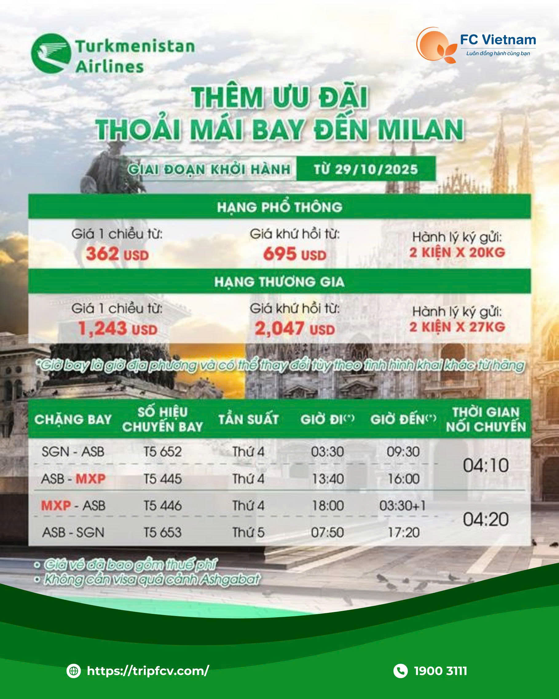 BAY THOẢI MÁI ĐẾN MILAN – TRÁI TIM THỜI TRANG CHÂU ÂU