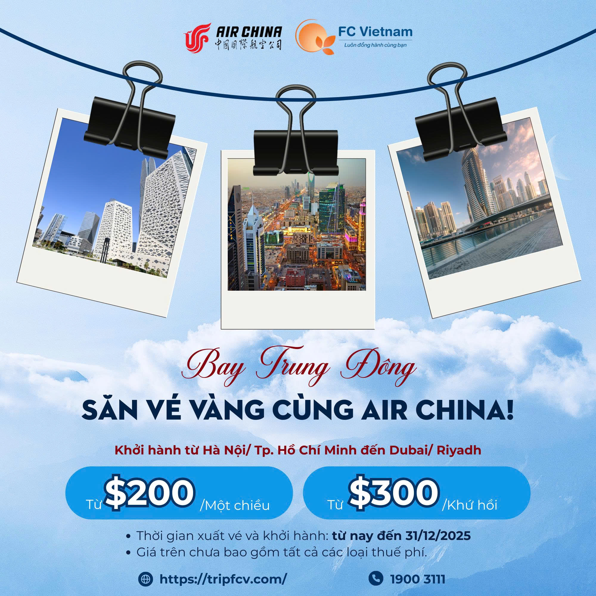 Khám phá những vùng đất huyền bí của Dubai và Riyadh với mức giá cực hấp dẫn từ Air China – cơ hội vàng để bạn chạm đến Trung Đông xa hoa mà ví vẫn “nhẹ tênh”!