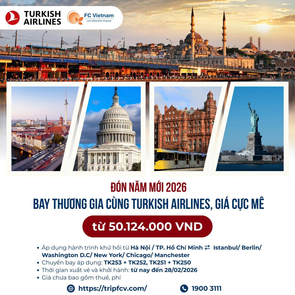 HELLO 2026 | BAY THƯƠNG GIA CÙNG TURKISH AIRLINES, GIÁ NGHE LÀ MUỐN CHỐT 14 Tháng 1 , 2026 Vé có hạn – chuyến tăng cường – chốt chậm là hết! HELLO 2026 | BAY THƯƠNG GIA CÙNG TURKISH...