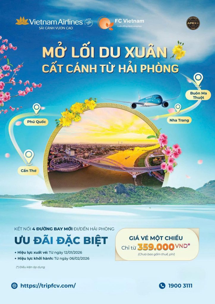 MỞ LỐI DU XUÂN – CẤT CÁNH TỪ HẢI PHÒNG 14 Tháng 1 , 2026 Thêm đường bay – thêm lựa chọn – du xuân là phải bay cho đã. MỞ LỐI DU XUÂN –...