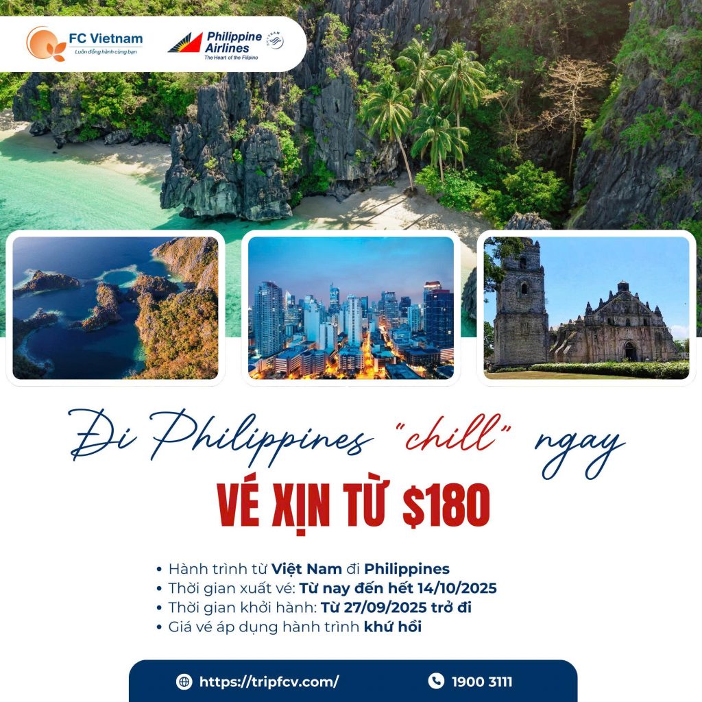 Đi Philippines “chill” ngay vé xịn từ $180 2 Tháng 10 , 2025 Trốn nóng, tìm biển xanh – bay ngay đến Philippines cùng Philippine Airlines để “chill” đúng nghĩa! Đi Philippines “chill”...
