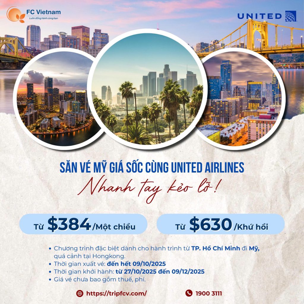 Săn vé Mỹ giá sốc cùng United Airlines | Nhanh tay kẻo lỡ! 2 Tháng 10 , 2025 Nhanh tay đặt chỗ tại F.C Việt Nam để tận hưởng hành trình thoải mái, giá vé tiết kiệm cùng...