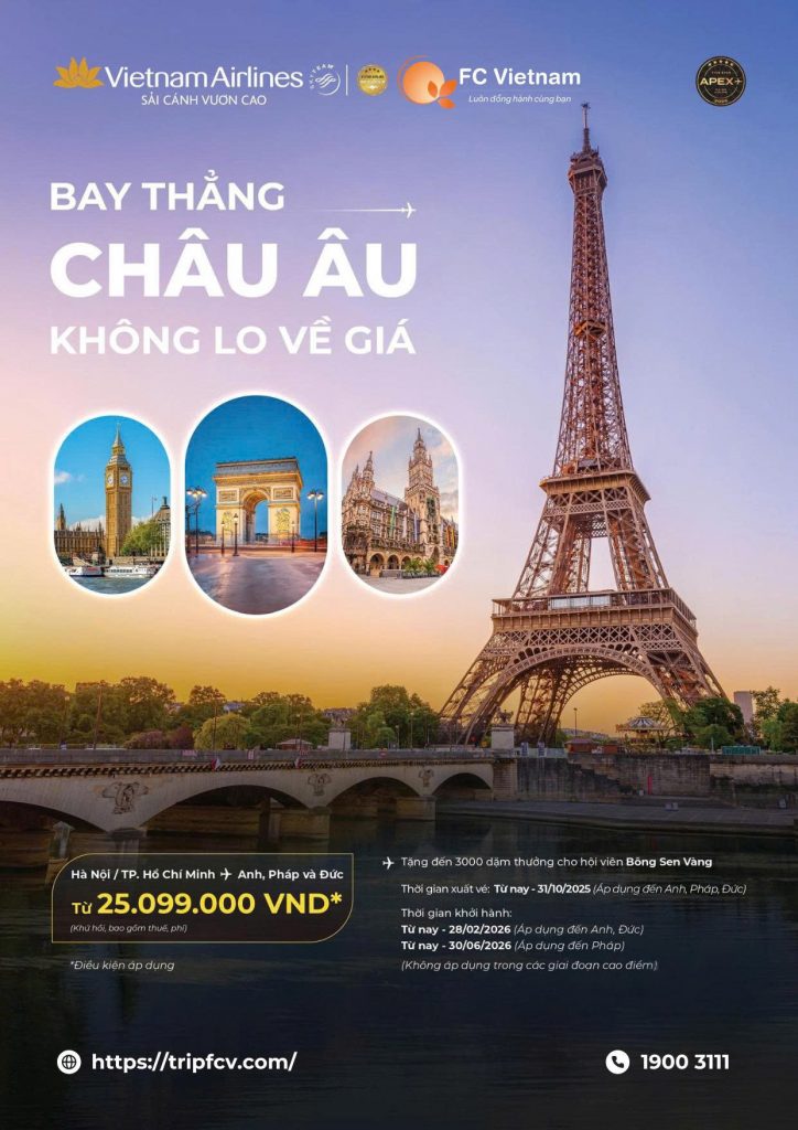 BAY THẲNG CHÂU ÂU – KHÔNG LO VỀ GIÁ 30 Tháng 9 , 2025 Vé rẻ trong tay – Paris, London, Berlin nay có ngayyy! BAY THẲNG CHÂU ÂU – KHÔNG LO VỀ GIÁ...