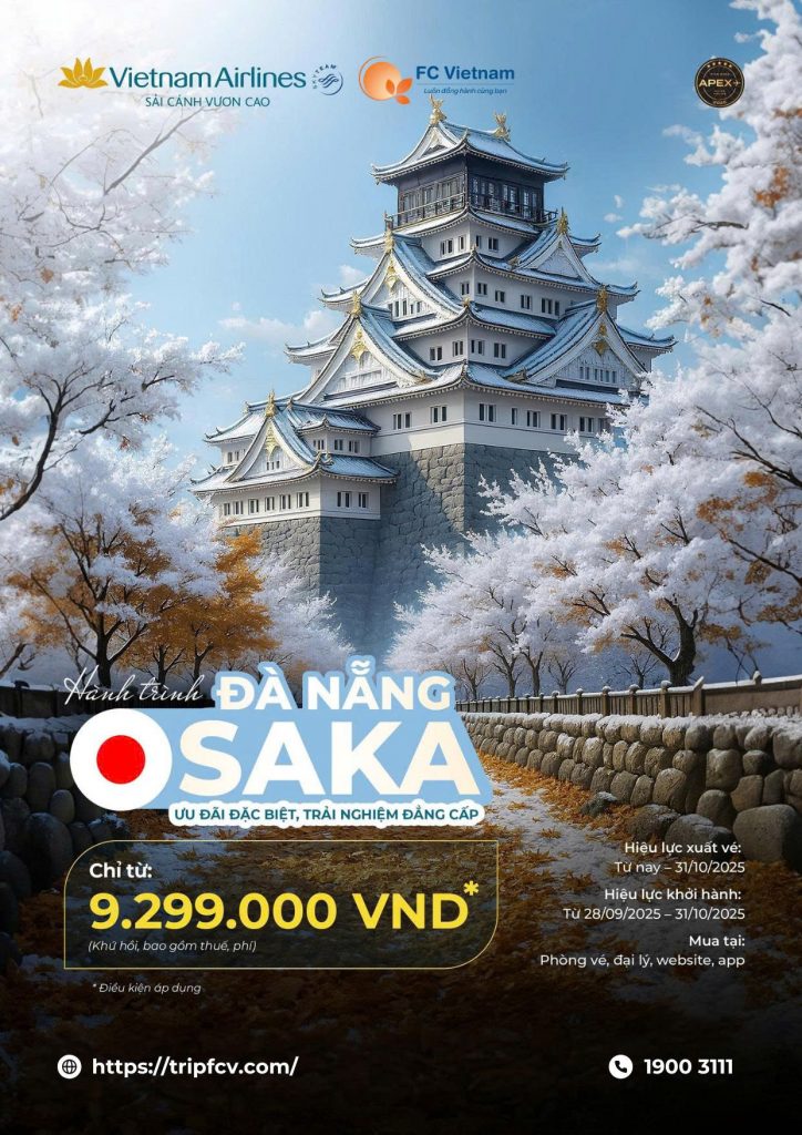 HÀNH TRÌNH ĐÀ NẴNG – OSAKA CHÍNH THỨC TRỞ LẠI 1 Tháng 10 , 2025 Vé rẻ trong tầm tay, xách vali bay Osaka liền tay! HÀNH TRÌNH ĐÀ NẴNG – OSAKA CHÍNH THỨC TRỞ...