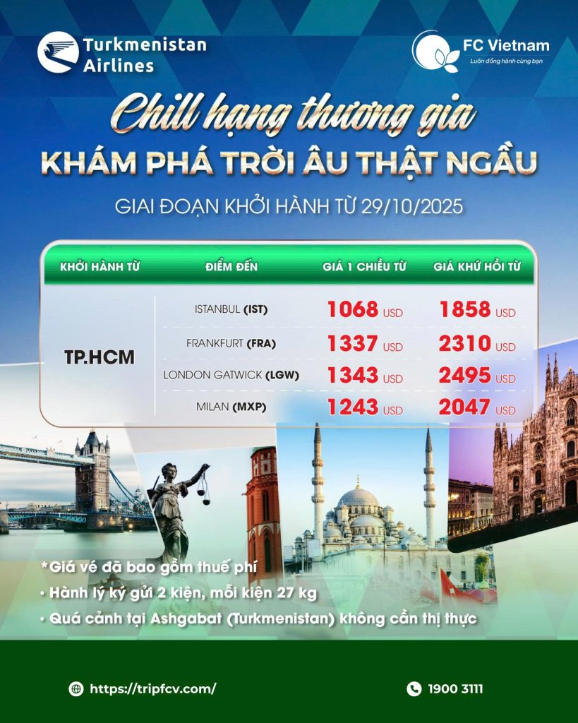 CHILL HẠNG THƯƠNG GIA – KHÁM PHÁ TRỜI ÂU THẬT NGẦU 23 Tháng 9 , 2025 Đặt vé ngay tại F.C Việt Nam CHILL HẠNG THƯƠNG GIA – KHÁM PHÁ TRỜI ÂU THẬT NGẦU Bay Business...