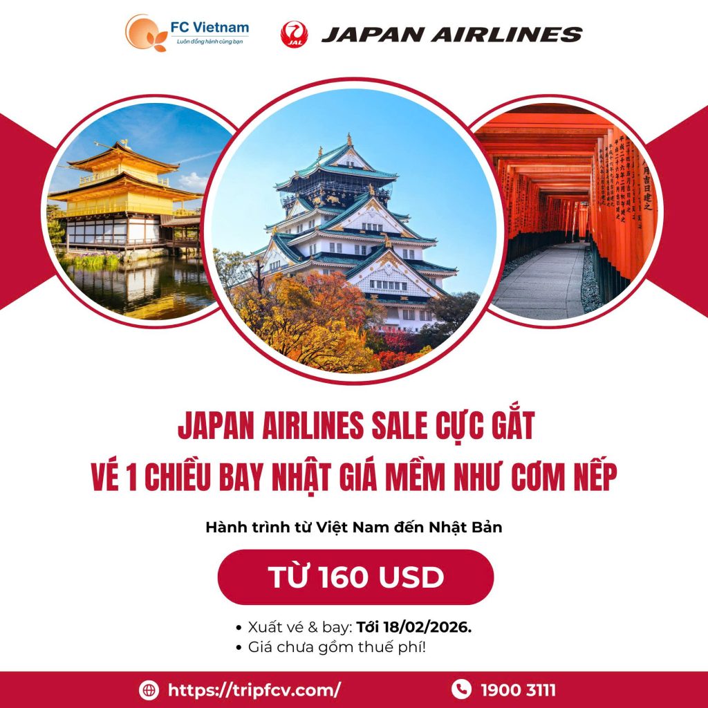 Japan Airlines Sale Cực Gắt 8 Tháng 12 , 2025 Xuất vé liền tay tại F.C Vietnam để không lỡ deal ngon! Japan Airlines Sale Cực Gắt Vé 1 chiều...