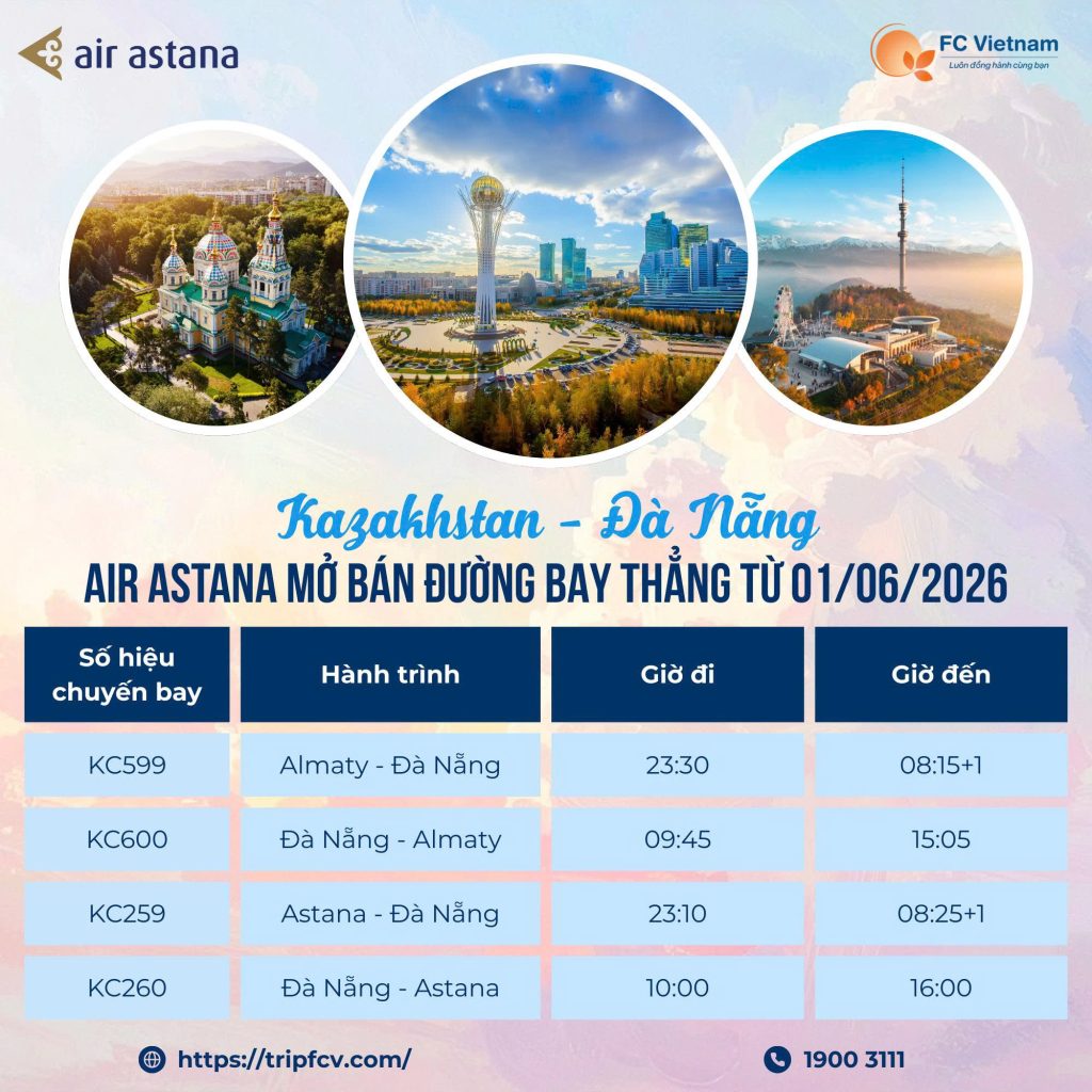 TIN NÓNG HỔI VỪA THỔI VỪA BAY | KAZAKHSTAN – ĐÀ NẴNG chính thức nối sóng! 24 Tháng 1 , 2026 Inbox ngay F.C Việt Nam để được hỗ trợ booking & chính sách tốt nhất nhé! TIN NÓNG HỔI VỪA...