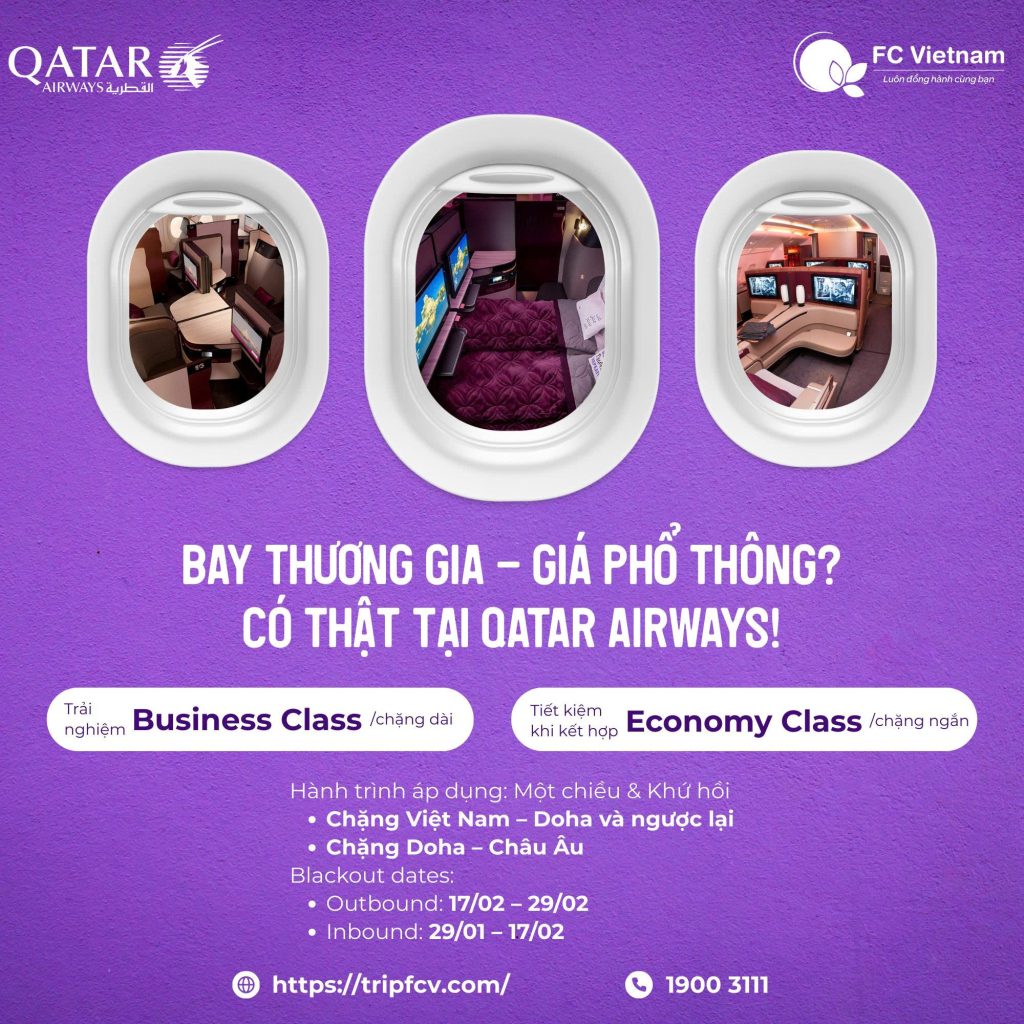 Bay Thương Gia – Giá Phổ Thông? Có thật nha! 23 Tháng 1 , 2026 Bay chuẩn gu – giá chuẩn chill! Bay Thương Gia – Giá Phổ Thông? Có thật nha! Qatar Airways triển...