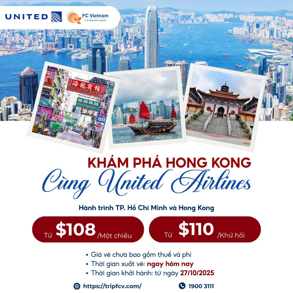 KHÁM PHÁ HONG KONG CÙNG UNITED AIRLINES 11 Tháng 9 , 2025 Đặt vé ngay tại F.C Việt Nam để giữ chỗ với mức giá không thể tốt hơn! KHÁM PHÁ HONG...
