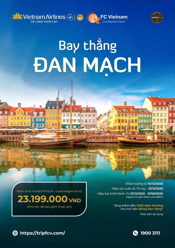 BAY THẲNG ĐAN MẠCH | ƯU ĐÃI ĐẶC BIỆT TỪ VIETNAM AIRLINES 13 Tháng 10 , 2025 Liên hệ ngay với F.C Việt Nam để được hỗ trợ đặt chỗ, tư vấn hành trình và nhận nhiều...