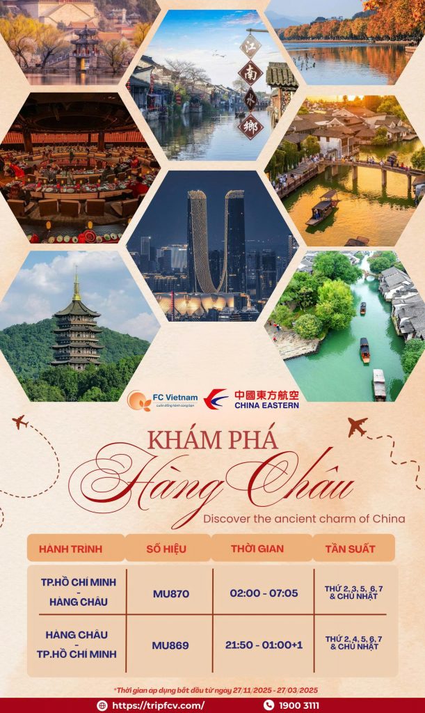 China Eastern Airlines | Tăng Chuyến Bay Tp.Hồ Chí Minh ⇄ Hàng Châu 31 Tháng 10 , 2025 Khám phá Hàng Châu – viên ngọc cổ kính bên dòng Tô Tây, nơi pha trộn giữa vẻ đẹp cổ...