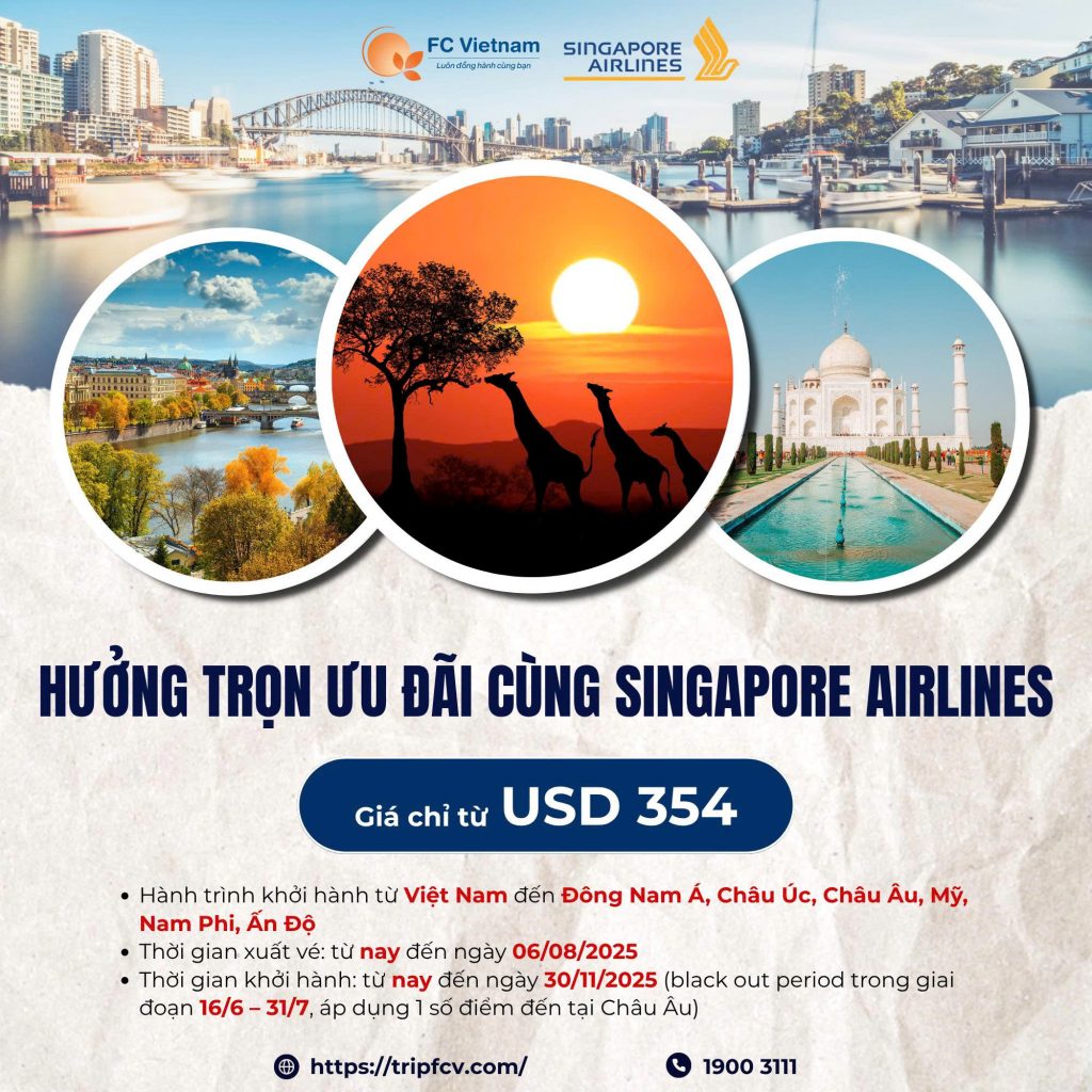 Hưởng Trọn Ưu Đãi Cùng Singapore Airlines 24 Tháng 7 , 2025 Vừa đẳng cấp về dịch vụ, vừa hấp dẫn về chi phí, bay Singapore Airlines là hết ý. Hưởng Trọn...