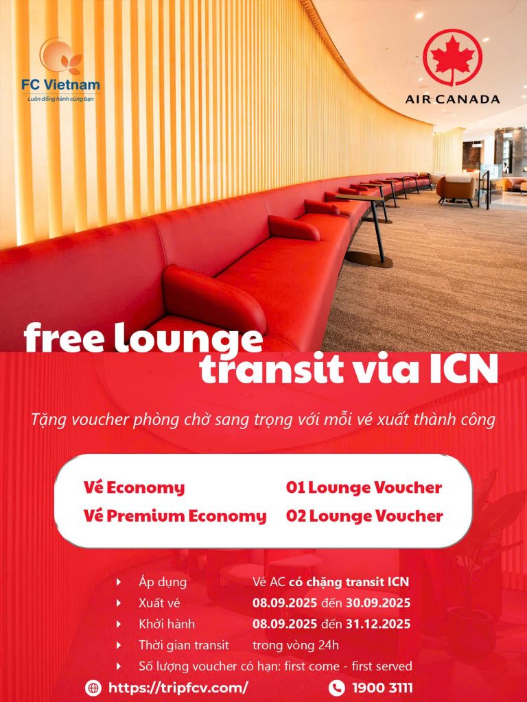 Air Canada | TẶNG THẺ PHÒNG CHỜ TẠI SÂN BAY INCHEON (ICN) 15 Tháng 9 , 2025 Số lượng voucher có hạn – cấp theo nguyên tắc first come, first served Air Canada | TẶNG THẺ PHÒNG...