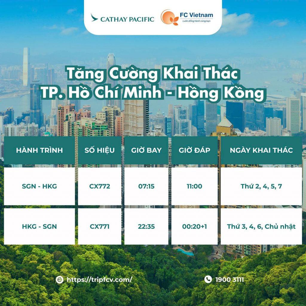 Cathay Pacific |Tăng Cường Khai Thác TP. Hồ Chí Minh – Hồng Kồng 15 Tháng 9 , 2025 Inbox ngay F.C Vietnam để được tư vấn lịch trình & săn vé tốt nhất! TIN VUI TỪ CATHAY PACIFIC...
