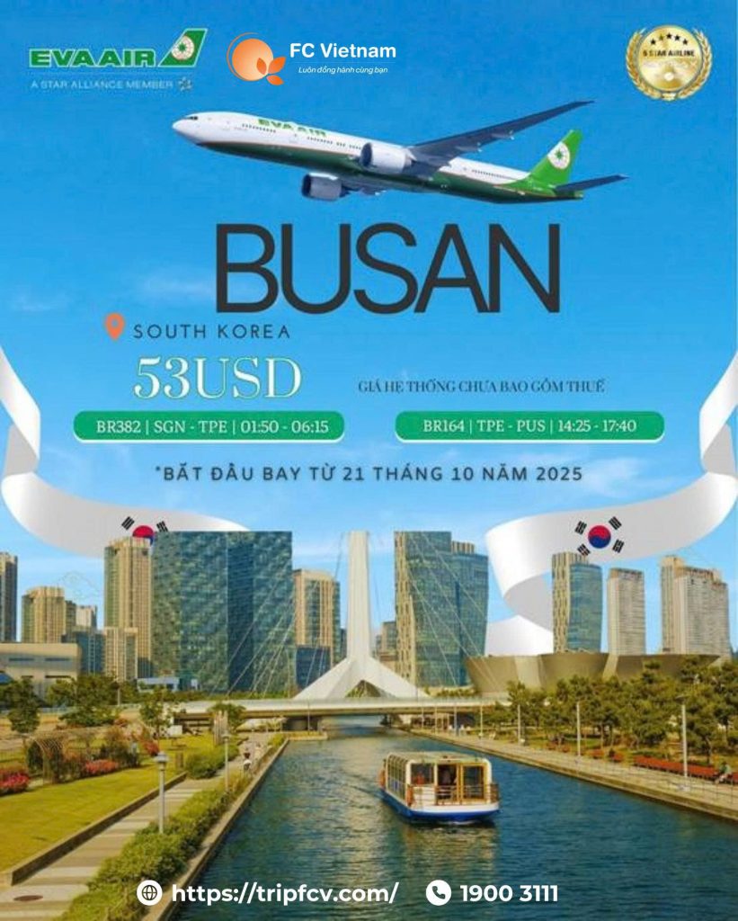Đường bay mới Tp. Hồ Chí Minh – Busan | Eva Air 23 Tháng 7 , 2025 Nếu bạn muốn khám phá Busan với hành trình bay đẹp cùng chi phí phải chăng, hãy xuất vé đến...