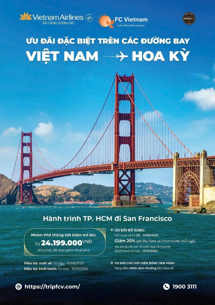 Vietnam Airlines | Ưu đãi đặc biệt trên các đường bay VIỆT NAM – HOA KỲ” 24 Tháng 7 , 2025 Hòa mình vào nhịp sống sôi động, chiêm ngưỡng khung cảnh tuyệt mỹ, khám phá nền văn hóa đa dạng...