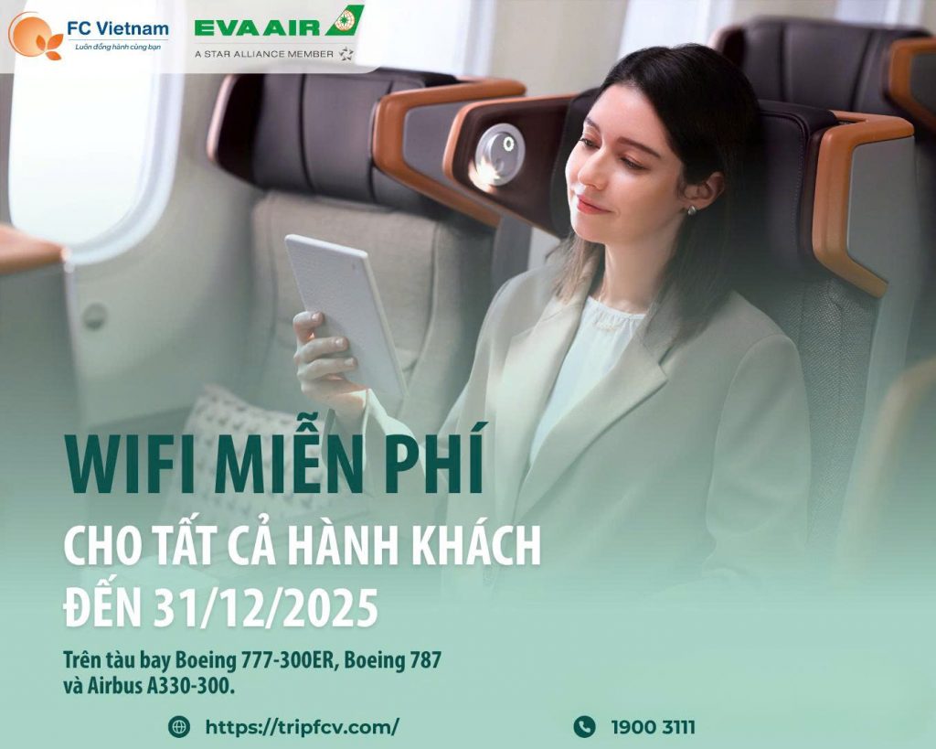 Wi-Fi free trên EVA Air tiếp tục tới 31/12/2025! 13 Tháng mười một , 2025 Book vé ngay tại F.C Việt Nam để lướt web tẹt ga trên bầu trời nhé! Wi-Fi free trên EVA...