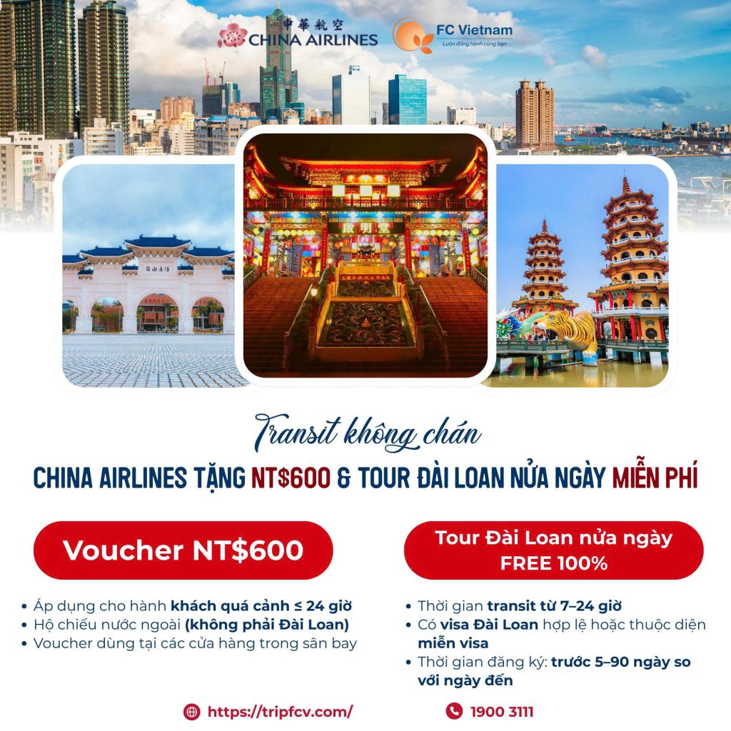 Muốn bay China Airlines để vừa đi – vừa hưởng trọn ưu đãi transit xịn sò này?Xuất vé ngay tại F.C Việt Nam để được: