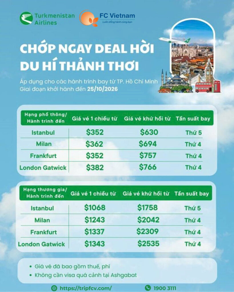 Liên hệ F.C Việt Nam để check giá – giữ chỗ – tư vấn hành trình