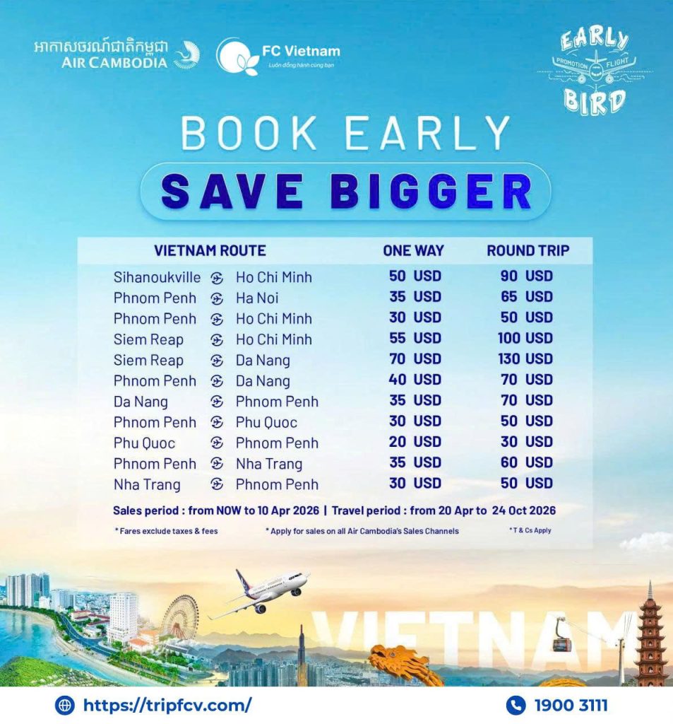 EARLY BIRD DEAL TỪ AIR CAMBODIA: