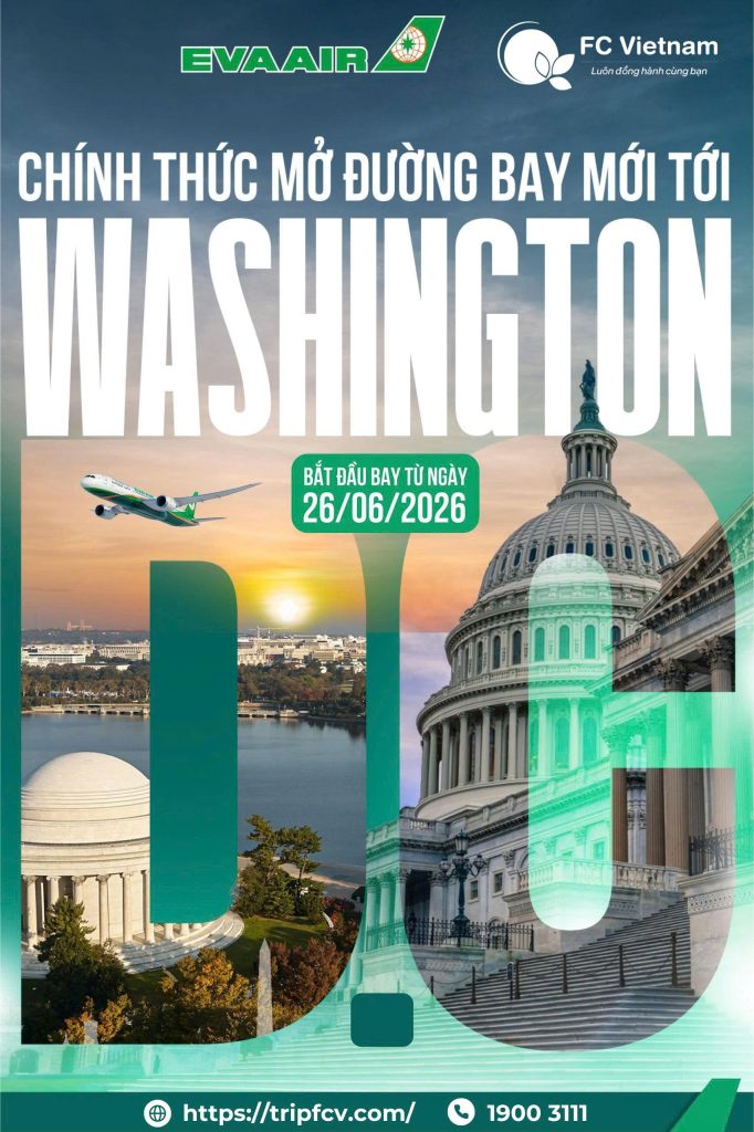 Breaking news cho hội mê USA – EVA Air mở đường bay Washington D.C, hành trình chạm tới trung tâm quyền lực và văn hoá của nước Mỹ nay đã dễ hơn bao giờ hết!