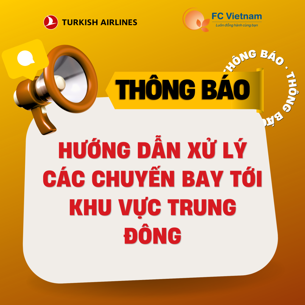 Turkish Airlines xin gửi thông báo mới nhất liên quan đến các chuyến bay bị ảnh hưởng bởi tình hình bất ổn tại khu vực Trung Đông.