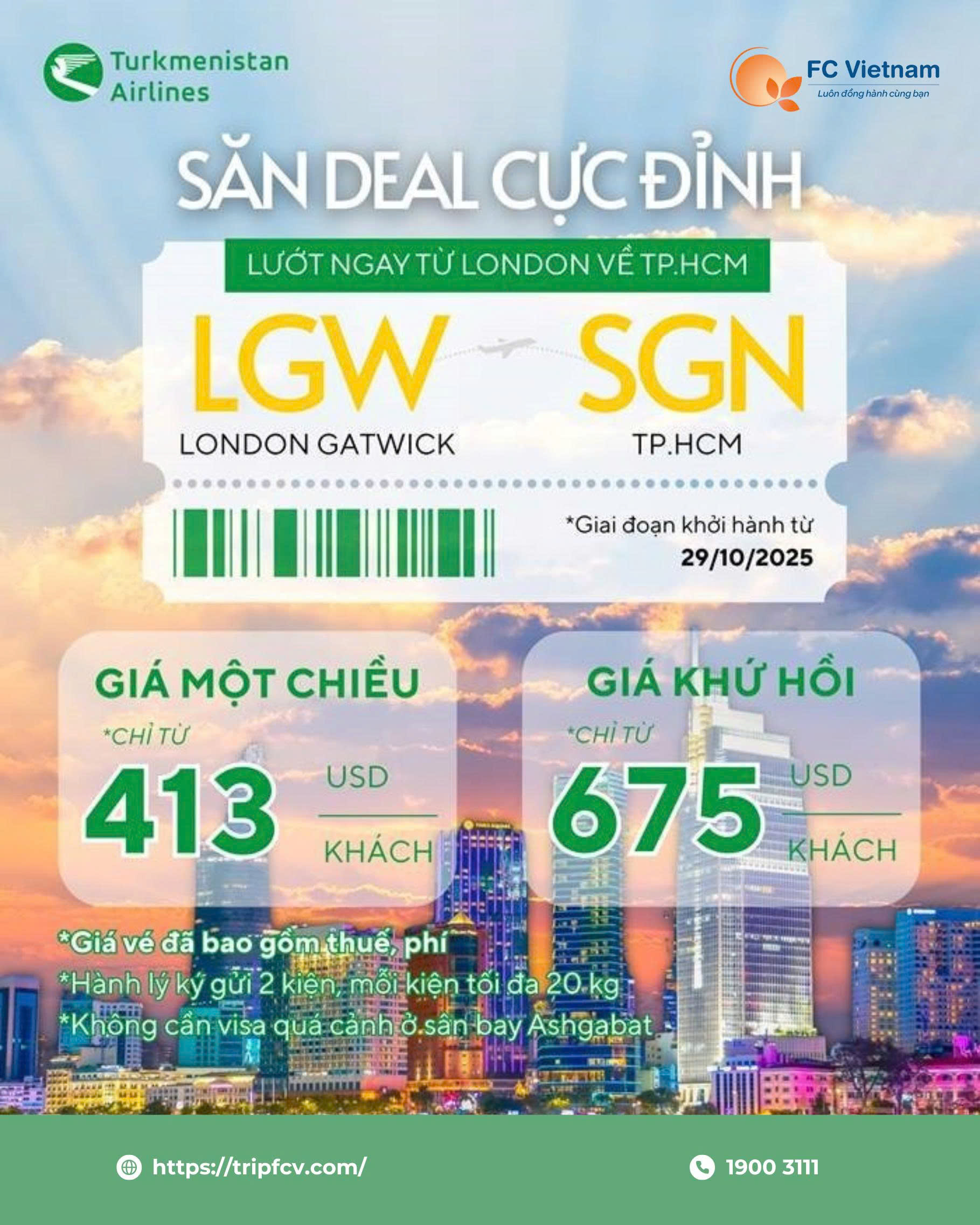 Khởi hành từ 29/10/2025, đừng bỏ lỡ cơ hội “về nhà nhanh – giá siêu rẻ” cùng đường bay London Gatwick (LGW) – Tp.Hồ Chí Minh (SGN)