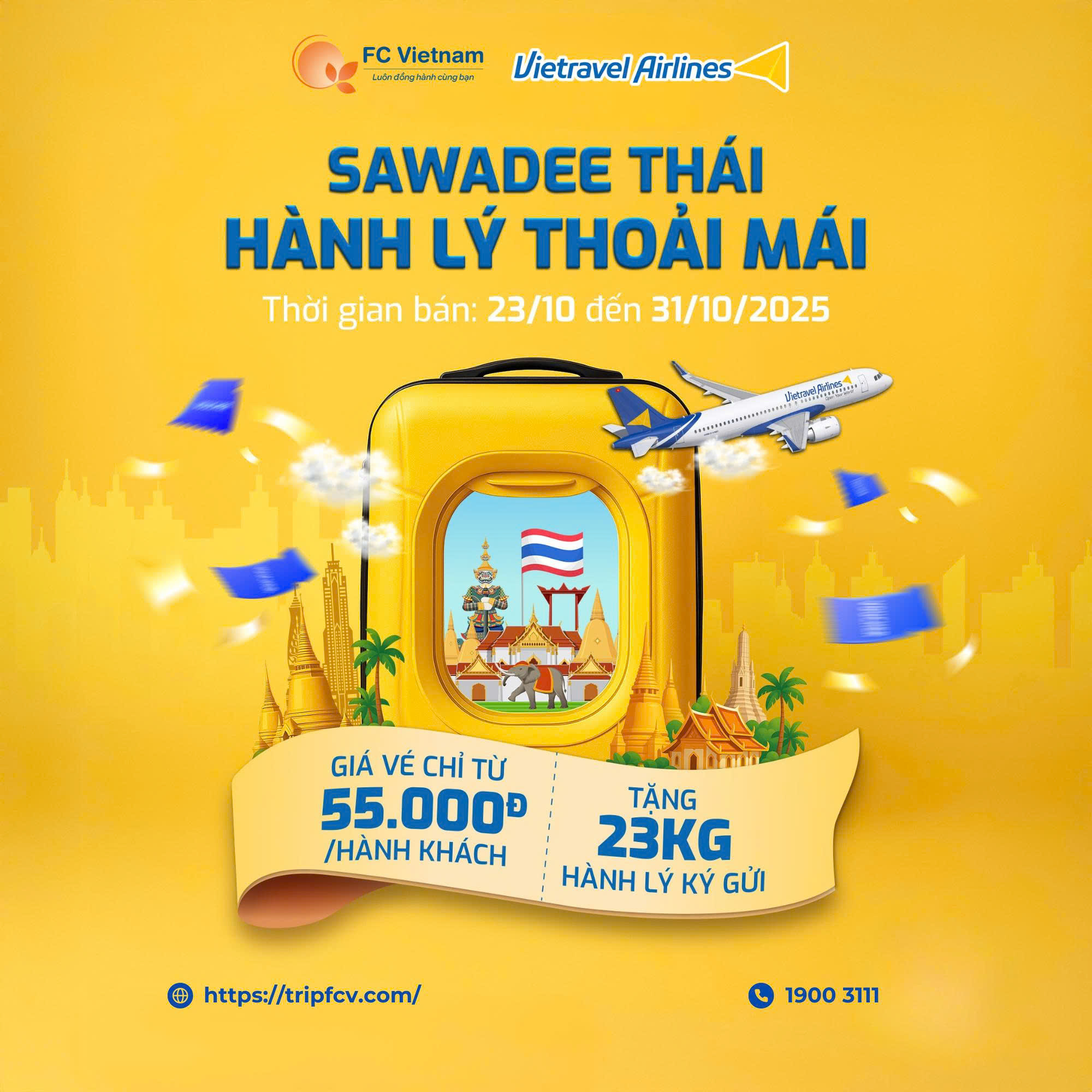 Giá vé chỉ từ 55.000 vnđ/khách – Bay sang Thái thoải mái, hành lý khỏi lo!