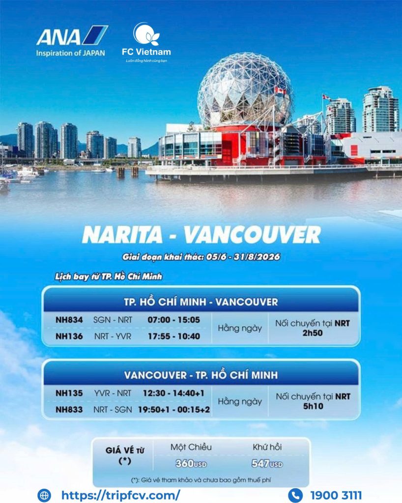 LỊCH BAY VANCOUVER – TP.HCM