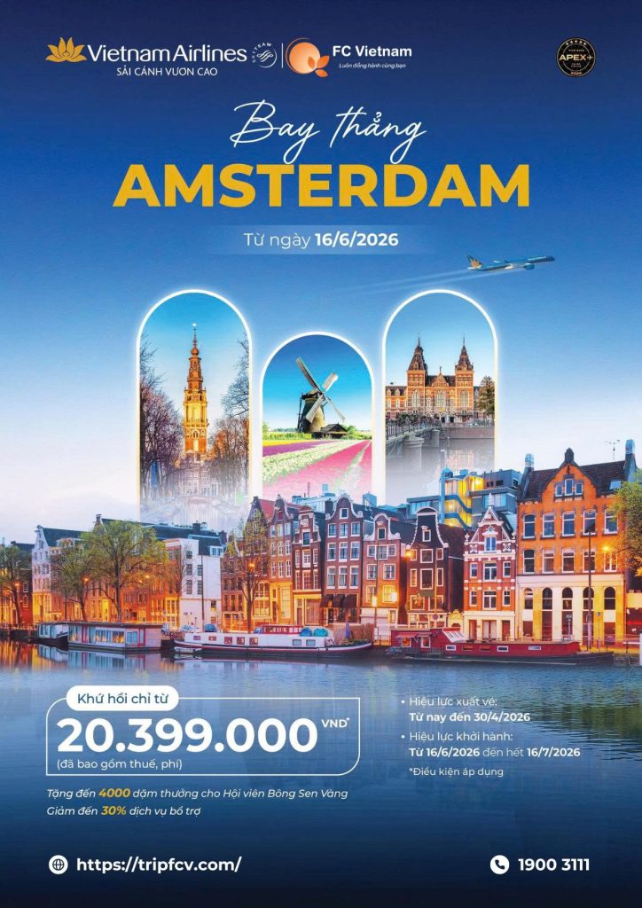 Châu Âu giờ đây gần hơn bao giờ hết! Từ Hà Nội bay thẳng Amsterdam (Hà Lan) cùng Vietnam Airlines – hành trình nhanh gọn, tiện lợi cho cả du lịch lẫn công tác.