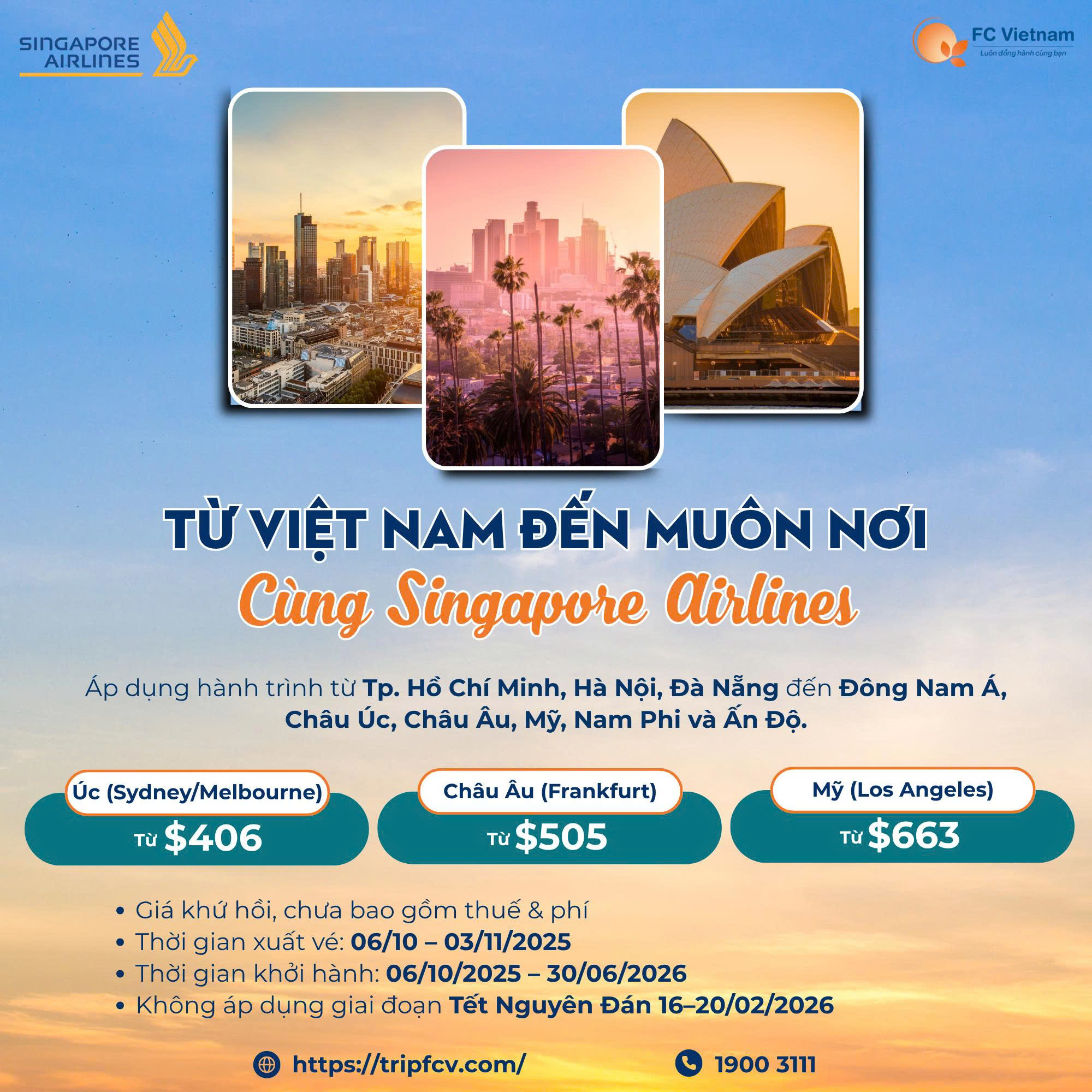 Singapore Airlines xin gửi đến chương trình ưu đãi đặc biệt tháng 10/2025, dành riêng cho hành khách khởi hành từ Việt Nam với mức giá hấp dẫn đến khắp năm châu!