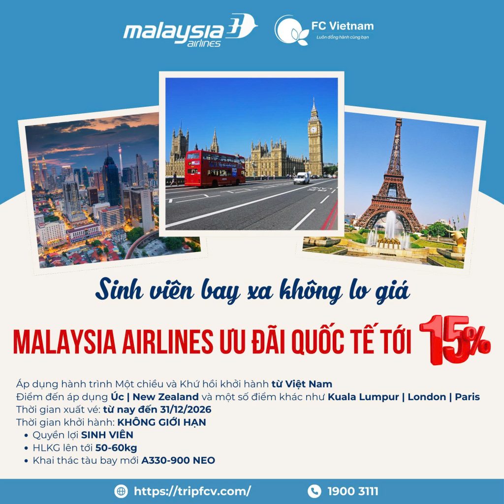 Malaysia Airlines tung ưu đãi SINH VIÊN cho hành trình quốc tế – giá mềm đúng chất sinh viên, quyền lợi thì xịn khỏi chê.