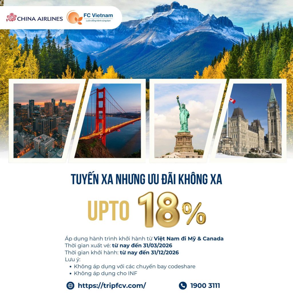 Bay Mỹ & Canada cùng China Airlines giờ không còn “xa vời” nữa đâu nha. Ưu đãi đang mở, chốt sớm là lợi liền tay.